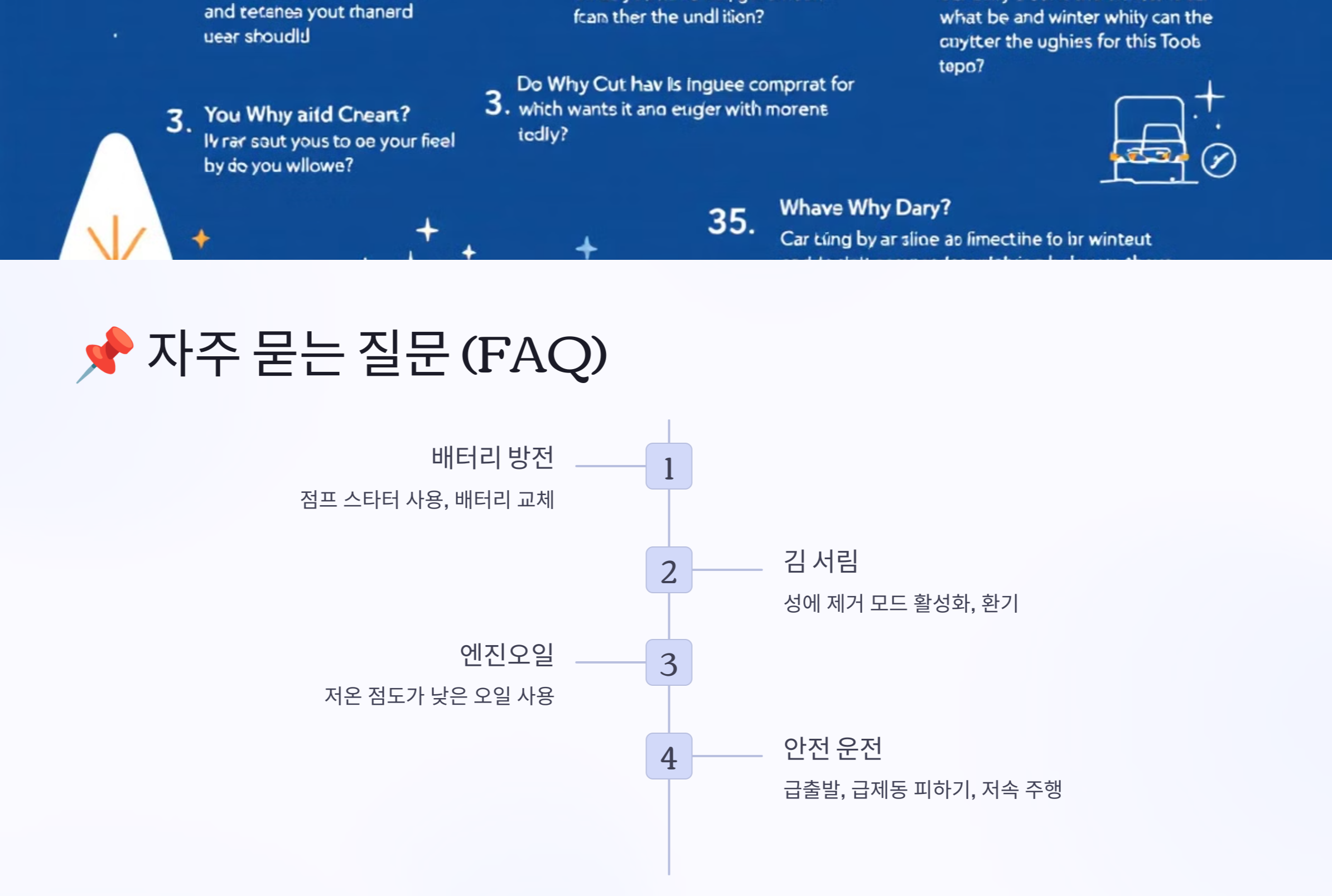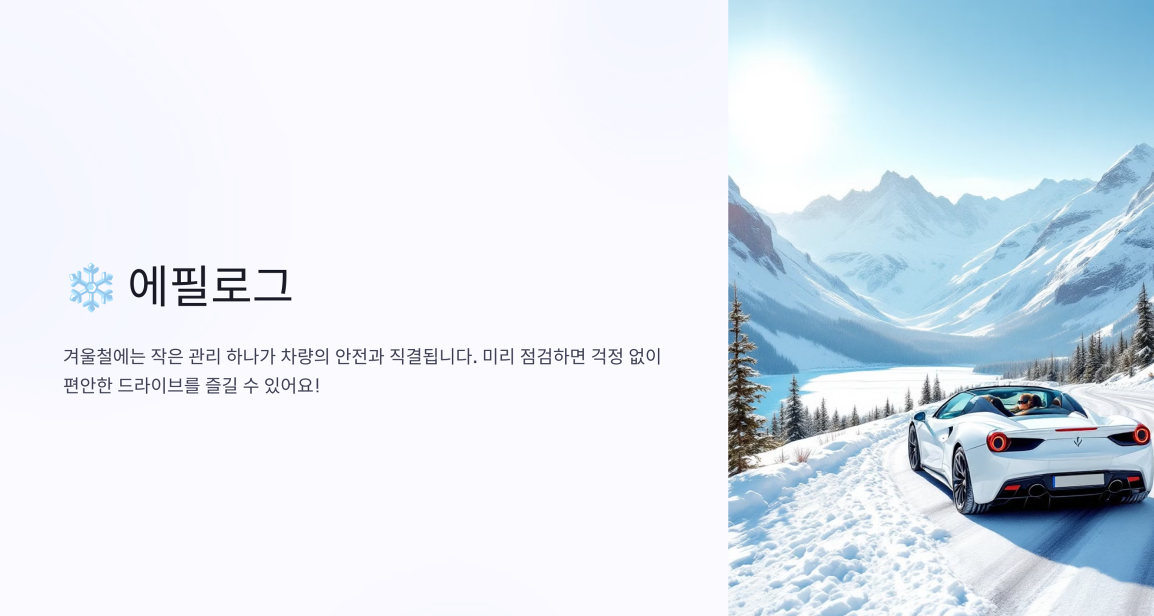 조금만 신경 써서 미리 점검하면, 한겨울에도 걱정 없이 편안한 드라이브를 즐길 수 있어요!