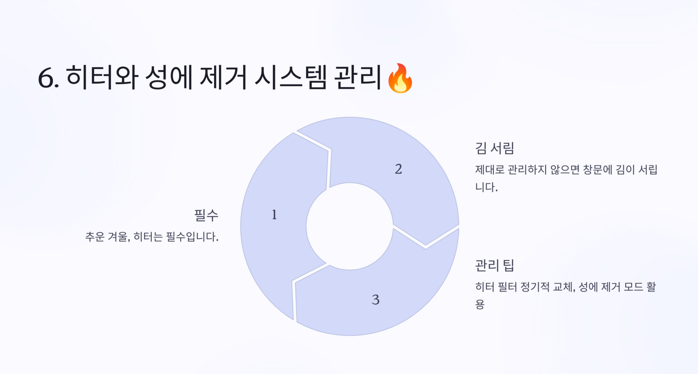 추운 겨울, 히터는 필수지만 제대로 관리하지 않으면 창문에 김이 서리고 성에가 낄 수 있어요.