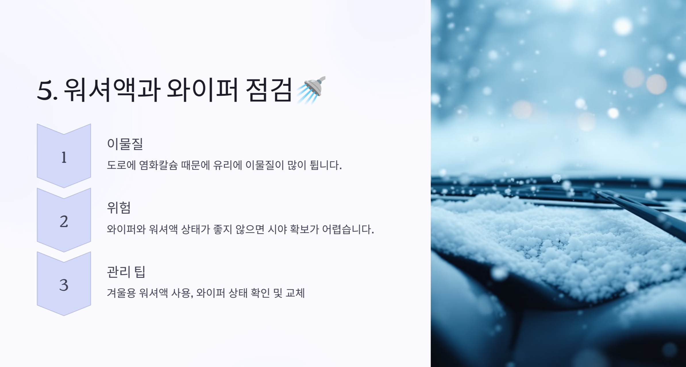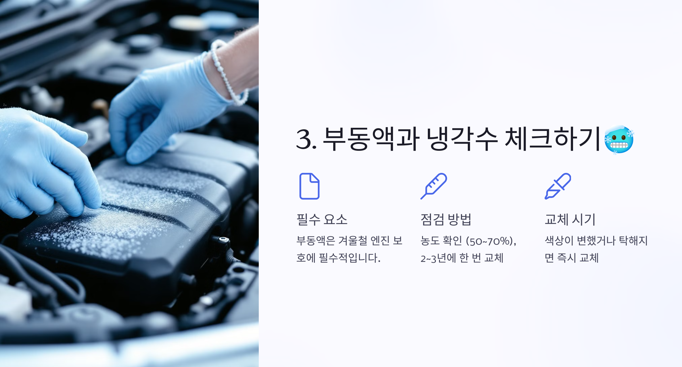 겨울철에는 작은 관리 하나가 차량의 안전과 직결됩니다.